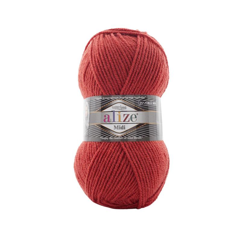 Наш сайт: ************ viber: **********, **********. Alize Superlana Midi - Склад: 25% шерсть, 75% акрил. - Вага мотка: 100 грам. - Довжина мотка: 170 метрів. - Упаковка: 5 мотків. - Рекомендовані спиці: No 5 - 7. - Рекомендований гачок: No 3 - 4.