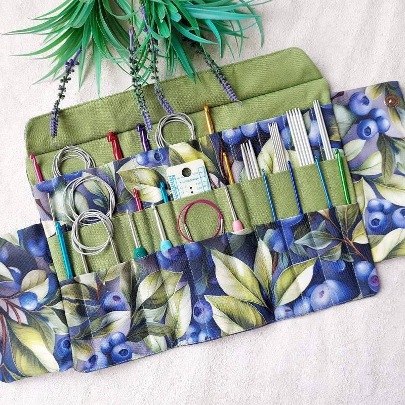 Органайзер чехол (универсальный), ручной работы, для крючков и спиц круговых так же для носков 15 -22 см и принадлежностей для вязки. Дополнительно кармашек на молнии для мелочи. Размер 32*24 Ткань : Плотный хлопок, уплотнитель клеевой флизелин.
