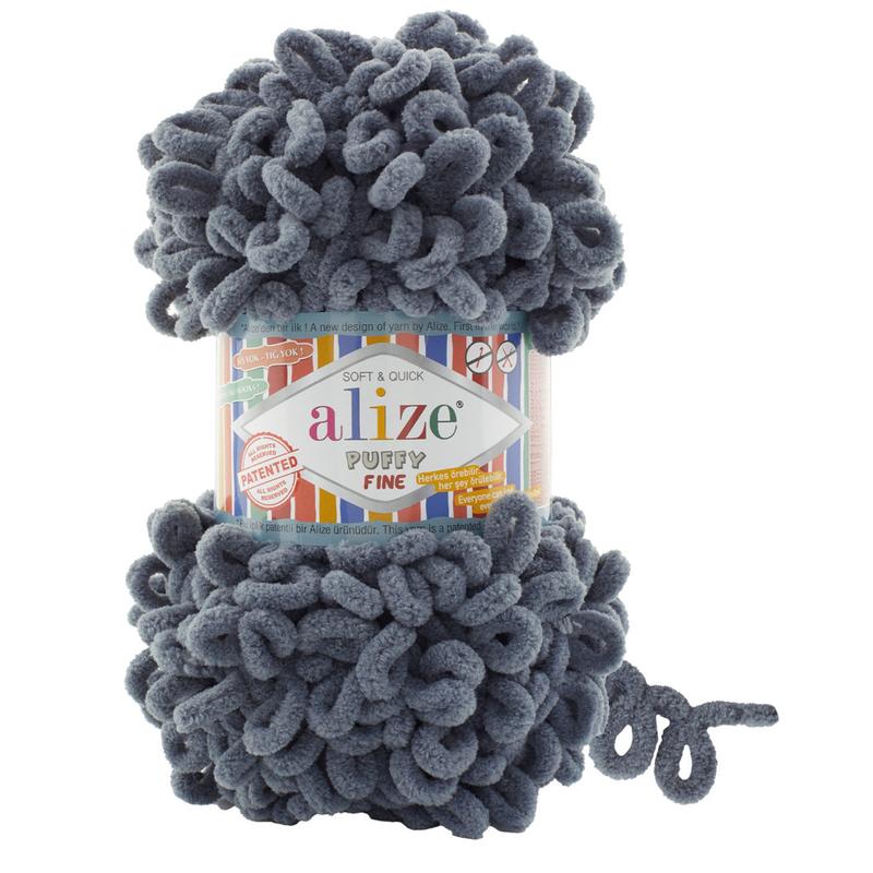 Пряжа alize puffy fine/алізе пуффі файн, темно-сірий 87