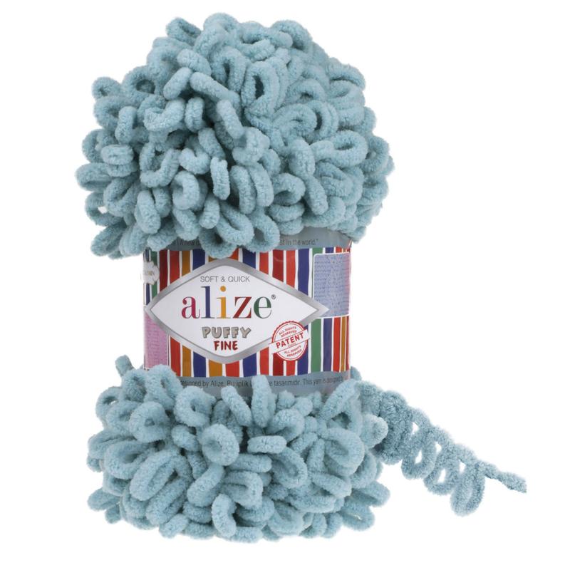 Пряжа alize puffy fine/алізе пуффі файн, лазуровий 414