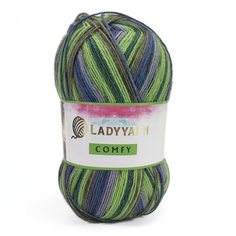 Пряжа comfy/комфі, синій-салатовий-сірий do051, lady yarn
