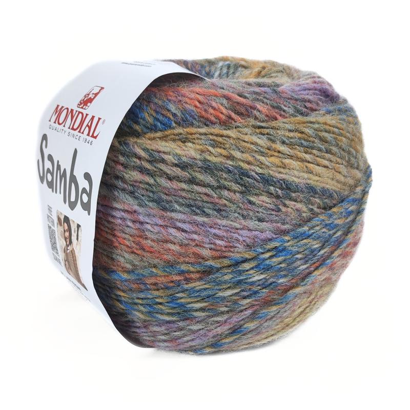 Пряжа Samba от итальянского производителя Mondial - это разноцветная пряжа, созданная из смеси шерсти и ультратонких волокон, что делает ее не только теплой и долговечной, но и легкой в работе. Пряжа Самба подходит для вязания джемперов, аксессуаров, кардиганов и вещей для дома. SAMBA от Mondial доступна в мотках весом 200 г и 400 м для вязания спицами 5,5-6,5 мм или крючком 4,5-5 мм. Купить пряжу Вы можете в нашем интернет-магазине ********** или посетить наш магазин в Киеве по адресу: ул. Стеценка, 30, линия 3, дом. 40. Мы предлагает возможность покупать пряжу, как в розницу, так и оптом, с оперативной доставкой по Украине. Благодаря быстрому обслуживанию и высокому качеству товаров мы гарантируем, что каждый ваш проект станет воплощением вашей индивидуальности и творческого вдохновения. Внимание! Цвет и оттенок пряжи могут отличаться в зависимости от настроек вашего экрана и освещения.