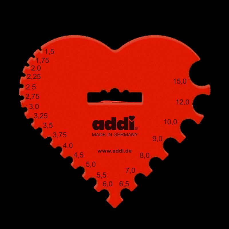 Калибратор addi имеет хорошую форму сердца, для вязальных крючков и спиц диаметром 1,5 - 15,0 мм. Вы можете купить эти инструменты у нас в интернет магазине с доставкой по Украине, а также в магазине по адресу: г. Киев, ул. Стеценка, 30, линия 3, дом. 40. Приходите к нам, мы поможем вам подобрать пряжу и аксессуары для вязания.