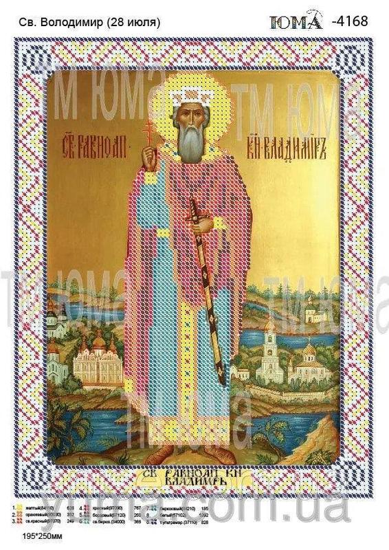 Схема для вишивки бісером св. володимир (28 липня) а4 юма-4168