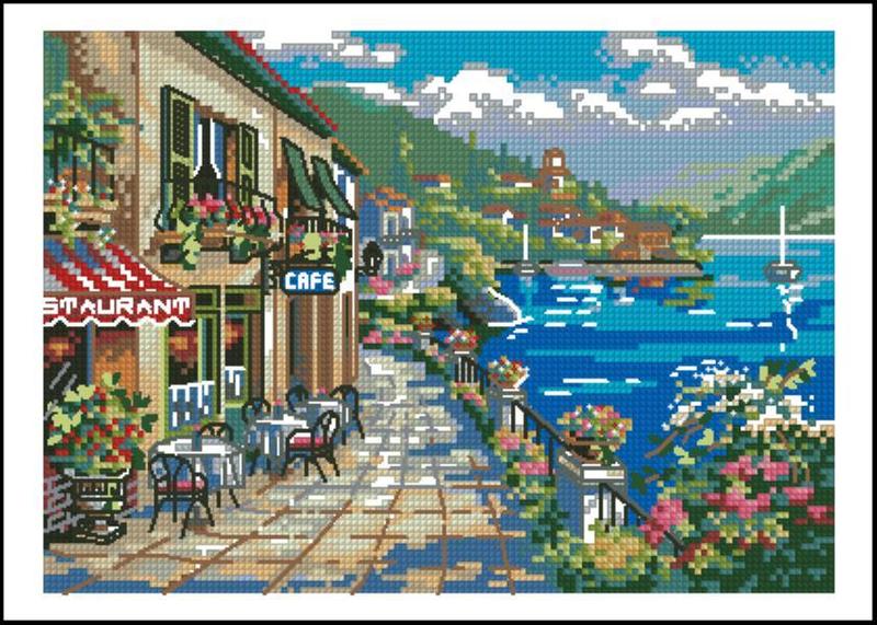 Набір для вишивки хрестиком. розмір: 21*15 см кафе біля моря