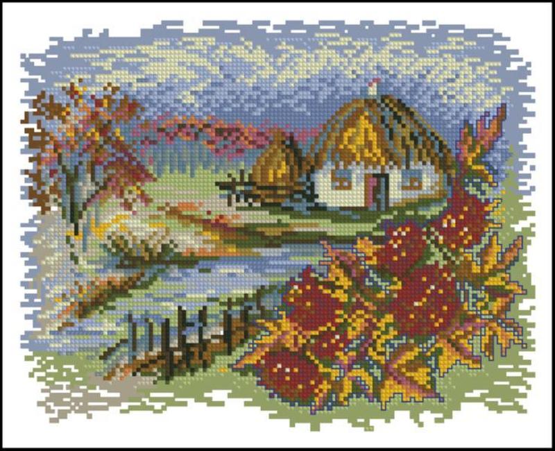 Набір для вишивки хрестиком. розмір: 20*16 см осінній дім