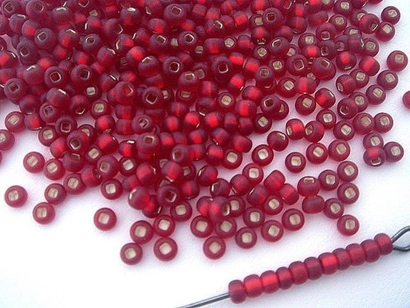 Бисер Preciosa матовый огонёк красный с квадратной серединкой. Цена за 10гр