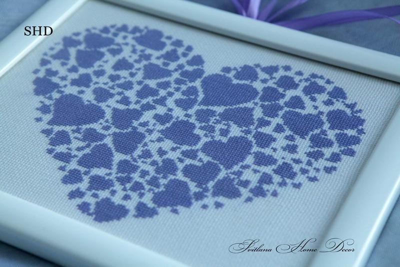 Вышитая картина "Фиолетовое Сердечко". Картина вышитая крестиком, использованы нитки DMC, один цвет, ткань AIDA размер картины в рамке 27*22 см.