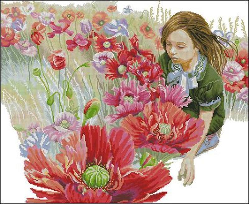 Набір для вишивання хрестиком. розмір: 45*37 см квітуче макове поле