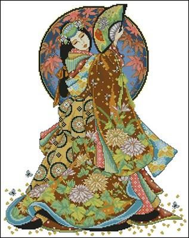 Набір для вишивання хрестиком. розмір: 31*38 см гейша з віялом