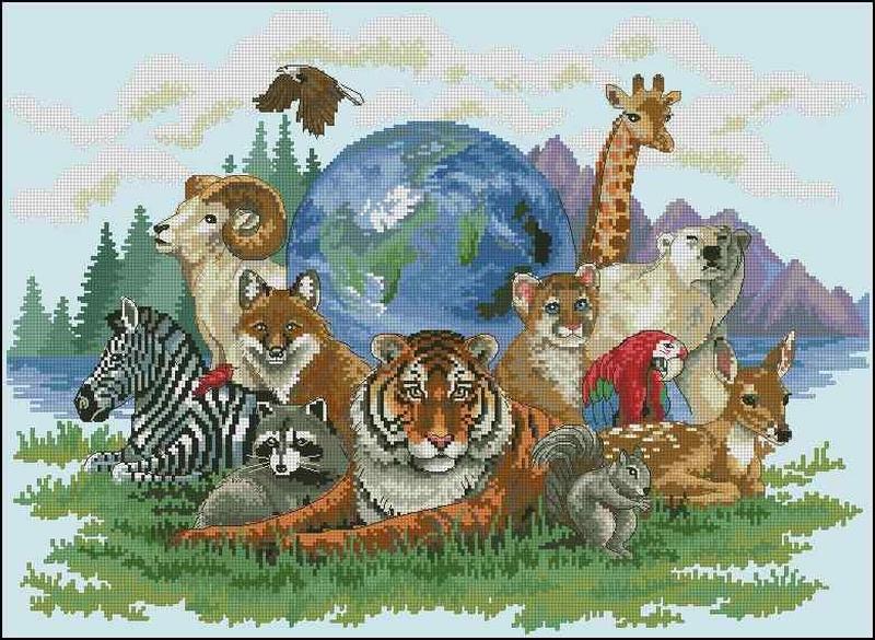 Набор для вышивки крестиком. размер: 41*30 см в мире животных