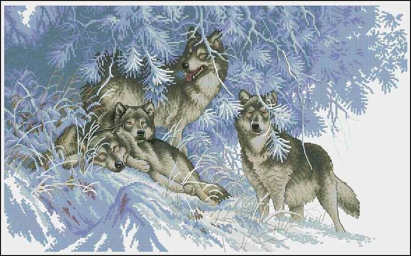 Набір для вишивання хрестиком. розмір: 47*29 см зимові вовки