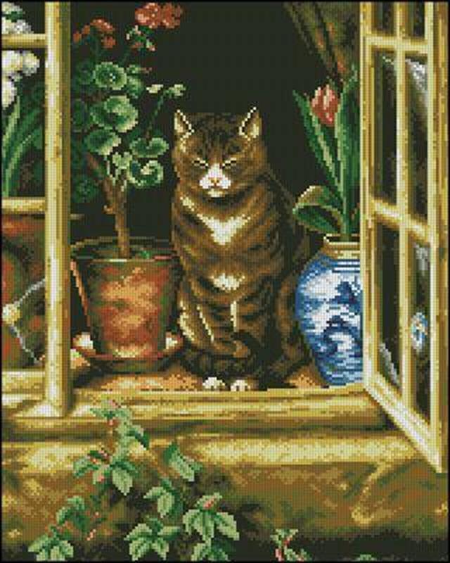 Набір для вишивання хрестиком. розмір: 25*32 см кіт у вікні