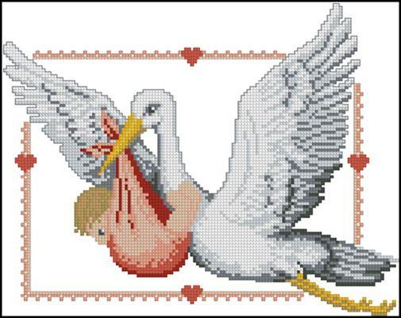 Набор для вышивки крестиком. размер: 21*17 см аист с девочкой