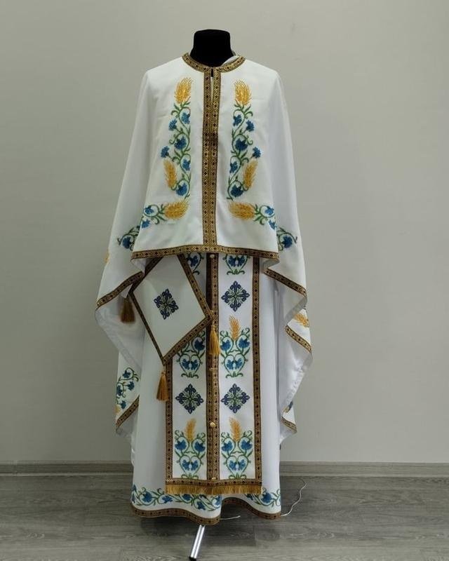 Заготовка для вишивки бісером або нитками, рубкою. Фелон викроєний і зшитий вам потрібно тільки вишити. Ціна вказана за весь комплект. У комплект входить : фелон, стихар, епітрахиль, наручні, таїнства, пояс
