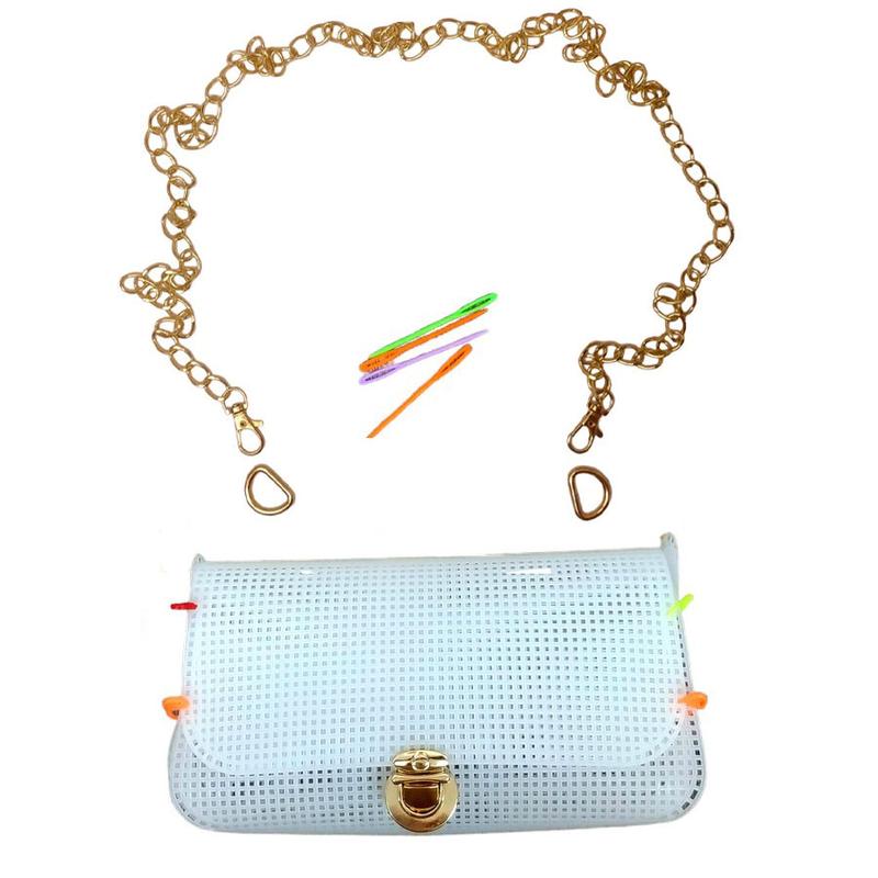 Из набора канвы и ниток вы сможете создать оригинальную сумку собственными руками. Вы можете изготавливать сумки не только для себя, а также на подарок и на продажу. Творчество по созданию сумки принесет вам массу удовольствия, а результат привлечет завистливые взгляды прохожих! В наборе : - Нитки 100 грамм голубого цвета - Канва (клетка 2мм) - Ручка-цепочка с карабинами - Полукольца - Иглы - Замок - Булавки Длина канвы 42 см Ширина канвы 22 см Длина цепочки 120 см Диаметр замочка 3 см Высота сумки 15 см Ширина сумки 22 см