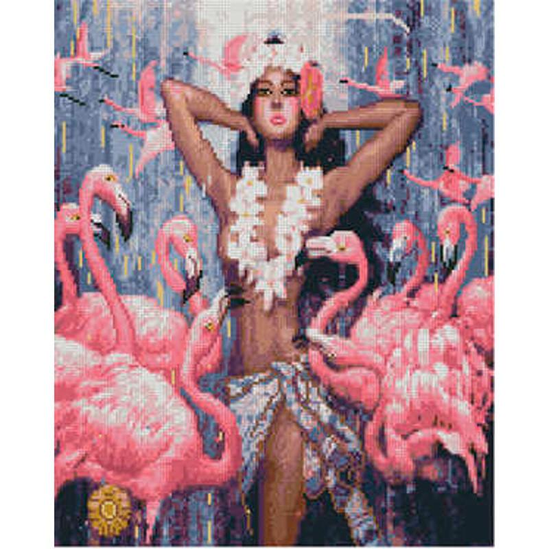 Алмазна картина Дівчина з фламінго Strateg 40х50 см