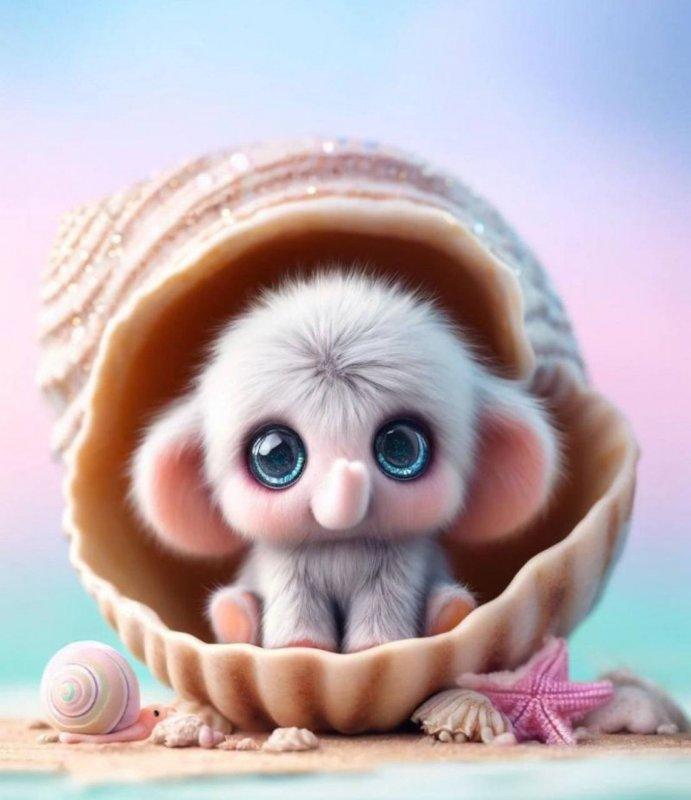 Алмазна мозаїка "слоненя в раковині", 20*20см, на рамці s10180 yargo