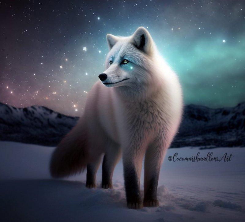 Алмазна мозаїка "полярна лисиця в ночі", без підрамника, 35*45см s30057 yargo