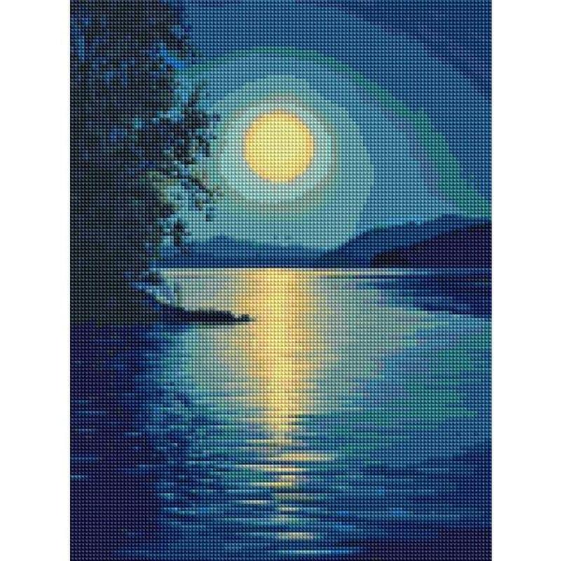 Алмазна мозаїка "Місячна синева" 30х40см У набір входить: клейка основа для викладення мозаїки на дерев'яному підрамнику комплект штучного каміння пластмасовий лоток для каміння пластмасовий стілус для каміння клей