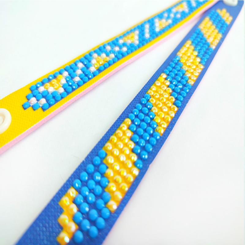 Набір 2 шт Браслет жовто-блакитний Алмазна мозаїка Виробник: Go To Art Розміри: Довжина: 21см Ширина: 2см У набір входить: - Стрази - Схема-наклейка - основа-браслет 2 шт. - Олівець - Клей - Контейнер для страз