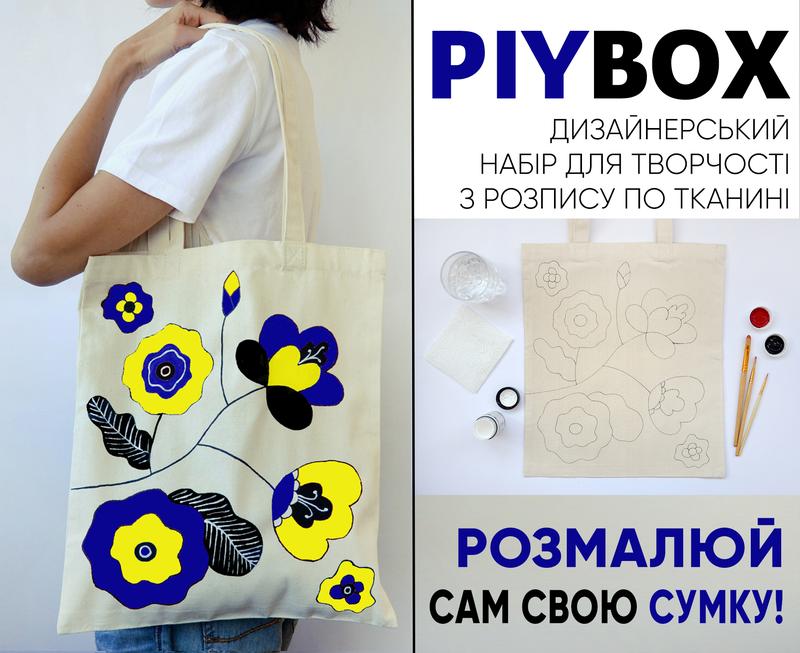 Набор для творчества PIY BOX PIY BOX - это уникальный мастер класс по росписи по ткани в одной коробке! Теперь ты сам дома сможешь попробовать то, что возможно давно хотел - раскрасить собственноручно свою сумку. А для этого мы все подготовили: 🟧100% хлопковая сумка высокой плотности (размер: 35,5/40,5см; ручки: 28см) 🟩Краски по текстилю (после нанесения изделия можно будет стирать)- 4шт. 🟨 пензлики - 3 шт 🟦 увлекательная пошаговая инструкция как это все сделать легко и качественно! Выбирай дизайн и создавай собственноручно что-то особенное! Размер упаковки: 25,5/17,5/5см