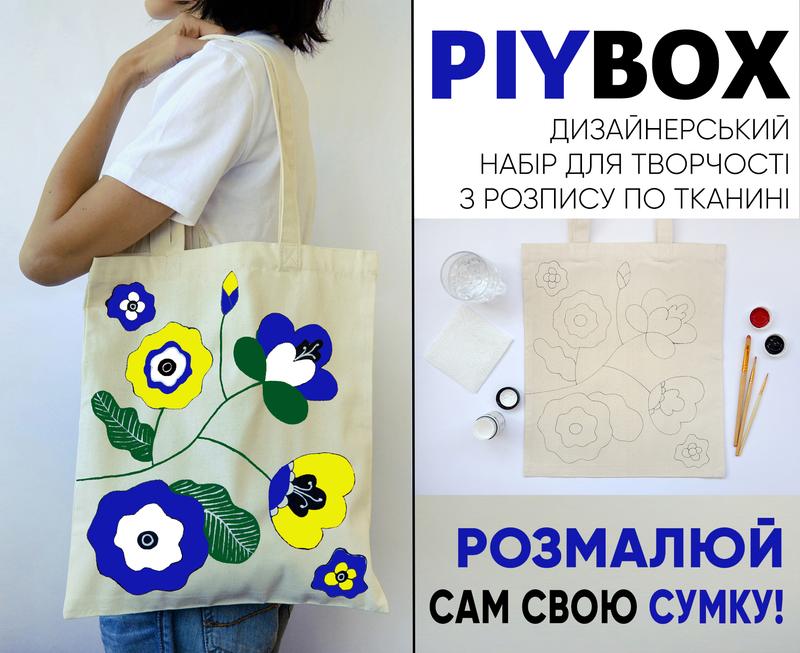 Набор для творчества PIY BOX PIY BOX - это уникальный мастер класс по росписи по ткани в одной коробке! Теперь ты сам дома сможешь попробовать то, что возможно давно хотел - раскрасить собственноручно свою сумку. А для этого мы все подготовили: 🟧100% хлопковая сумка высокой плотности (размер: 35,5/40,5см; ручки: 28см) 🟩Краски по текстилю (после нанесения изделия можно будет стирать) -5шт. 🟨 пензлики - 3 шт 🟦 увлекательная пошаговая инструкция как это все сделать легко и качественно! Выбирай дизайн и создавай собственноручно что-то особенное! Размер упаковки: 25,5/17,5/5см