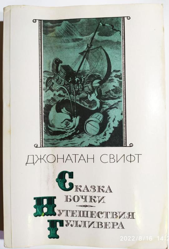 Виробник: Інший виробник Вік: Від 6-7 років Тип книг: Художні М.: Правда, 1987 г. Тираж: 700000 екз. Тип обкладинки: м'яка Формат: 60x90/16 (145x215 мм) Сторінк: 480 Опис: Позациклова повість і роман у чотирьох повістях. Напис на обкладинці та внутрішні ілюстрації Т. Мортен. Вміст: А. Інгер. Джонатан Свіфт (ступальна категорія), ст. 3-26 Джонатан Свіфт. Казка бочки (повість, переклад А. Інгера), стор. 27-154 Джонатан Свіфт. Подорожі Гуллівера (роман, переклад А. Інгера) Подорож до Ліліпутії (повага, переклад А. Інгера), стор. 162-230 Подорож у Бробдинг (повість, переклад А. Інгера), ст. 231-307 Подорож до Лапуту, Бальнібарбі, Лаггнегг, Глаббдобриб і Японії (порадло, переклад А. Інгера), ст. 308-377 Подорож до країни гуігнмів (повість, переклад А. Інгера), ст. 378-457 А. Франківський, А. Анікст. Примітки, стор. 458-478
