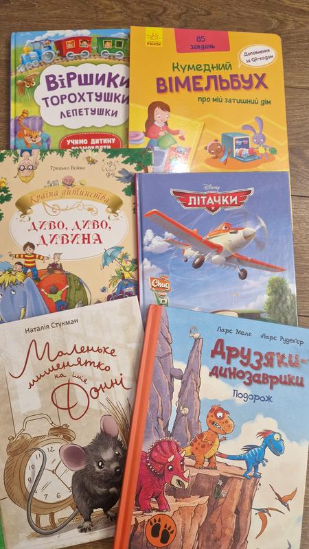 1 фото Торохтушки 140 Вімельбух-260 Дивина 40 грн Літачки 120 Динозаврики 250 2 фото Сонливі казочки 65 Брехливе мишеня , мавпочка, корівка - по 160 Розкажи казку 170 3 фото Мікробот( 3 книги) -360 грн 4 фото Тедді коплект 470 5 фото Арчибальд 150 Сила собак 200 Диво в долоньках 200 Даруся 220 Історії про звірят 400 Салон краси 80 6 фото по 40 7 фото Банда по 600 комплект 8 фото Історії для хлопчиків 300 Піратські 270 Новий рік 40