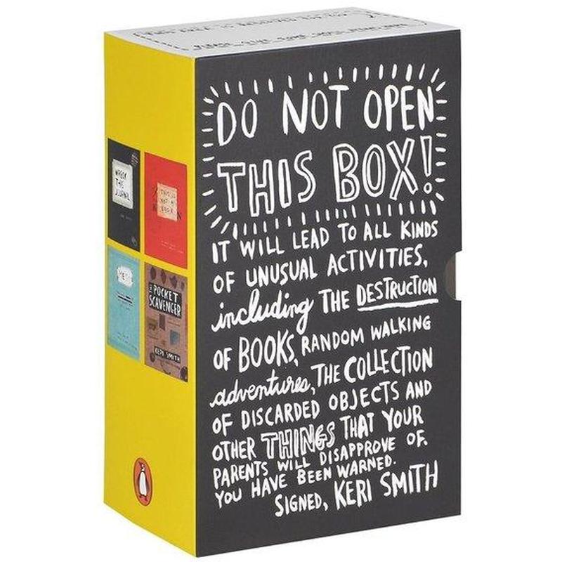 Оригінальні витвори. Книга 1. The Pocket Scavenger Within the pages of THE POCKET SCAVENGER, you´ll be instructed to go on an unusual scavenger hunt, collecting a spectrum of random items: something that is miniature, a stain that is green, something from the year you were born, a used envelope, and more. Once your quarry is in hand, you´ll apply an alteration dictated solely by chance: create a funny character, make it into a building, conceal it, add polkadots, remove a section, add stripes, scribble on top, fold, turn into an article of clothing, make it "pretty", and so on. The results: you´ll be forced out of habitual ways of thinking or acting, discover new connections, and try things you might not have done on your own, creating a version of THE POCKET SCAVENGER that is unique, dependent on time, place, experience, and you Книга 2. This is not a Book In this uniquely skewed look at the purpose and function of "a book," Keri Smith offers an illustrated guide that asks readers to creatively examine all the different ways This Is Not a Book can be used. With intriguing prompts, readers will discover that the book can be: - A secret message - tear out a page, write a note on it for a stranger, and leave it in a public place Книга 3. Mess: The Manual of Accidents and Mistakes Your whole life you´ve been taught to avoid making a mess: Try to keep everything under control, color inside the lines, make it perfect, and at all costs, avoid contact with things that stain. This book asks you to do the opposite of what you have been taught. Think of it as your own personal rumpus room. A place to let loose, to trash, to spew, to do the things you are not allowed to do in the "real world." It´s time to make a mess. The only three rules you´ll find in this book: - Do not try to make something beautiful. - Do not think too much. (There is no "wrong.") - Continue under all circumstances. Книга 4. Wreck this Journal For anyone who´s ever had trouble starting, keeping, or finishing a journal or sketchbook comes this expanded edition of WRECK THIS JOURNAL, an illustrated book that features a subversive collection of prompts, asking readers to muster up their best mistake and mess-making abilities and to fill the pages of the book (or destroy them). Through a series of creatively and quirkily illustrated prompts, acclaimed artist Keri Smith encourages journalers to engage in "destructive" acts - poking holes through pages, adding photos and defacing them, painting pages with coffee, coloring outside the lines, and more - in order to experience the true creative process. With Smith´s unique sensibility, readers are introduced to a new way of art and journal making, discovering novel ways to escape the fear of the bla
