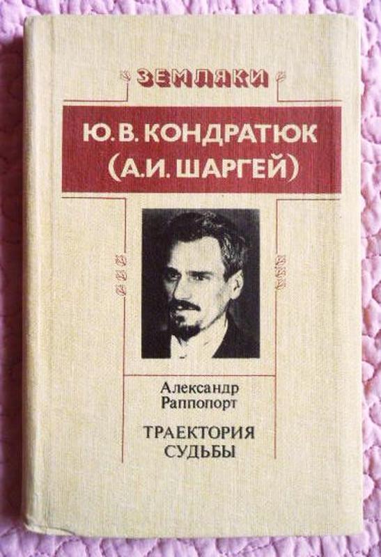 Траєкторія долі. Документальна повість.(Ю.В. Кондратюк - А.І. Шаргій). Олександр Рапопорт Новосибірське книжкове видавництво, Новосибірськ, 1990 р. Формат 84х 108/32, 200 стор. з ілюстраціями. Тверда обкладинка. Стан гарний. Тираж 350экз. Ця книга - документальна повість про Ю.В. Кондратюка (А.І. Шаргея). Його ім'я носить кратер на Місяці й одна з площ міста Новаcoристика. У 1929 році Кондратюк видав головну працю свого життя - книгу "Завоювання міжпланетних просторів", що містить конкретні розрахунки всіх стадій космічних польотів. Через багато років, його рекомендації та розрахунки лягли в основу світової практичної космонавтики. Працюючи механіком на будівництві елеваторів у г. Новосибірську, він на свої власні гроші видав свою книгу. Поряд із К.Е.Циолковським, Н.І. Кібальчичем, Ф.А. Ландером та іншими А.І. Шаргій - Ю.В. Кондратюк завоював для країни право називатися батьківщиною теорії та практики космічних польотів. У книзі використані фотографії з архіву Меморіального музейного центру ним. Ю.В. Кондратюка.
