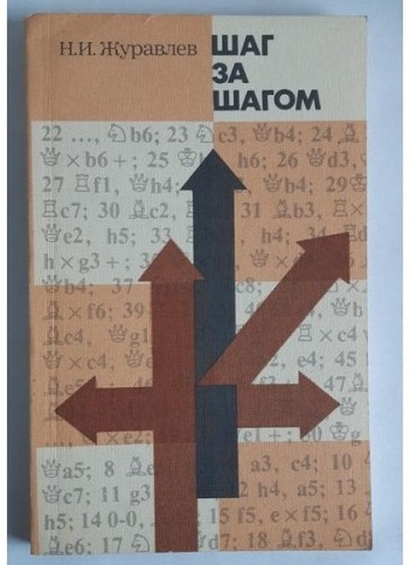Журавлів Н.І. Крок за кроком. М. Фізичнатура та спорт. 1986 р. 288 с. М'яка палітурка. Шахова абетка, елементи шахової партії, тактика. Багатий матеріал для занять у аудиторії або самоутворення. Мета цього посібника — підготовка шахатистів IV-III розрядів, але його буде корисно прочитати й уже наявні ці розряди й навіть второрозрядникам. У ньому зібрано великий навчальний матеріал. Автор відповідно до сучасних педагогічних принципів знайомить читачів з основами шахової гри. Поручний метод викладання, а також численні вправи сприяють послідовному засвоєнню матеріалу. Книга може бути використана і для занять у школах і Домах піонером під керівництвом тренера. Призначена для масового читача.