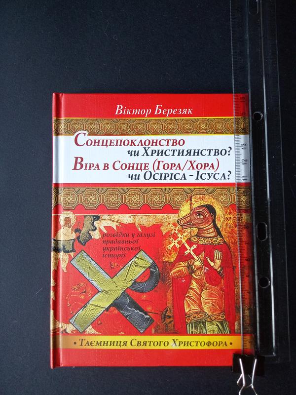 Стан: нова Мова: українська Сторінок: 130 Видавництво: Київ Обкладинка: тверда Ілюстрації: чорно- білі Книга в кількості. Анотація: Книга присвячена інтерпретації образу Святого Христофора у Християнстві. Автор доводить, що його праобразом був один з чотирьох "дітей" Гора - кінь Дуамутеф, тим самим підтверджуючи взаємозв'язок Християнства з релігією Давнього Єгипту. Прославляючи Матір Божу, наші далекі пращури повторювали слова ангела: "Бог Гор родиться, діво радуйся", засвідчуючи справжнє ім’я Сина Божого - Гора. Книга закликає сучасників до пшуку істинної стежини до нашого Творця, нашого Бога. Вона розрахована на студентів і викладачів вузів — істориків, археологів, богословів, генетиків, мовознавців, усіх, кого цікавить стародавня Світова Історія та стародавня Історія України.