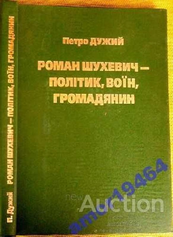 Роман Шухевич - політик, воїн, громадянин. Петро Дужий, Галицька Видавнича Спілка 1998.-256 с.іл. Тверда.Формат 150х205 мм. У книжці відомого ветерана національно-визвольної боротьби 40-50рр., члена Проводу ОУН Петра Дужого описано епізоди Українського Опору часів Другої Світової війни, діяльність Дружин Українських Націоналістів, УПА та її Головного командира Романа Шухевича – генерала Тараса Чупринки. Спогади почесного громадянина Львова Петра Дужого є цінними насамперед тому, що він був особисто знайомий з багатьма провідними діячами визвольного руху та українського суспільного життя загалом: Зеноном Косаком, Іваном Климівим – "Легендою", Миколою Лемиком, Романом Шухевичем, Катериною Зарицькою, Патріархом Йосипом Сліпим, Василем Куком-"Лемешем", Дмитром Маївським –"Тарасом", Миколою Арсеничем, Олексою Гасиним, Осипом Дяковим-"Горновим", Дмитром Донцовим, Миколою Лебедем, Іваном Кедриним-Рудницьким, Миколою Климишиним та багатьма іншими. Спогади будуть корисні читачам, які цікавляться суспільною атмосферою західноукраїнських земель 30-50 рр. та маловідомими фактами визвольної боротьби. Стан дуже добрий.