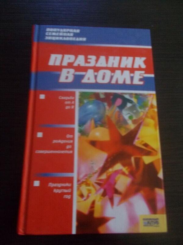 Оригінальна назва: Праздник в доме. Популярная семейная Энциклопедия Характеристики книги: Мова: російська Стан книги: Б/В Обкладинка: тверда Рік випуску: 2008 Видавництво: Книжковий клуб «Клуб Сімейного Дозвілля» Місто: Харків, Бєлґород Кількість стр: 320 Формат: 84x108/32 (~130x200 мм) ISBN: 978-966-343-769-9 У цій книзі ви дізнаєтесь: - Весілля від А до Я - від народження до повноліття - свята цілий рік