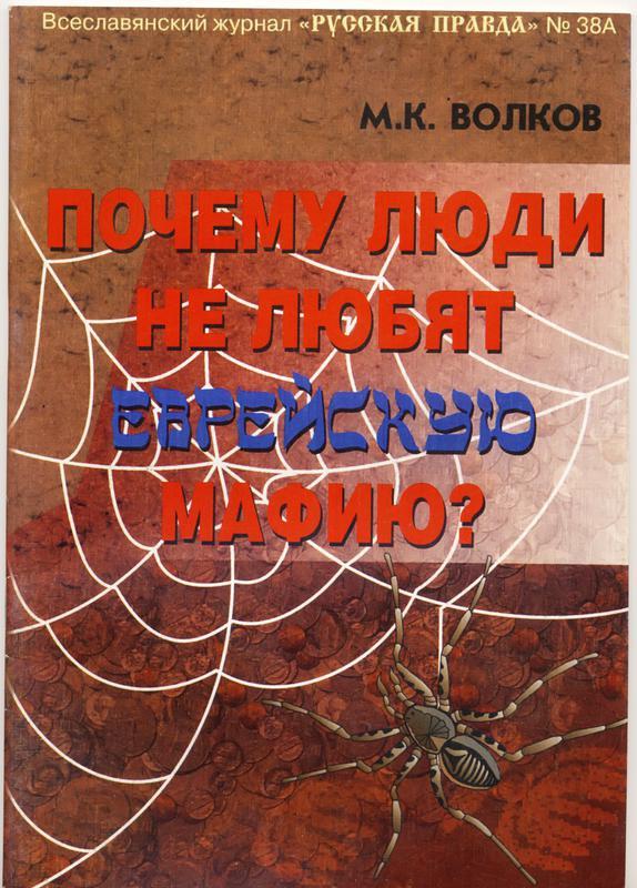 Волков М.К. Почему люди не любят еврейскую мафию? Второе издание, 2006 г., 48 с. Мягкая обложка, обычный формат. Данная работа известного камчатского ученого, академика М.К. Волкова раскрывает людям глаза на подлинную политику международного талмудического сионизма — наиболее жестокой из всех ныне существующих преступных этнических идеологий. Для читателей, интересующихся историей, политикой и религией.