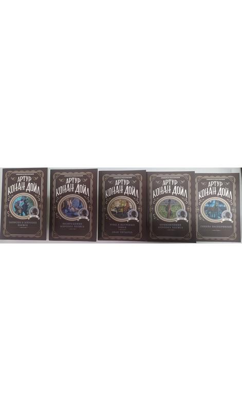 1. Пригоди Шерлока Холмса Англійський письменник, публіцист і журналіст Артур Конан Дойл увійшов до світової літератури передусім як творець найбільшого Детектива усіх часів і народів - Шерлока Холмса. Шляхетний і безстрашний борець з Злом, володар гострого розуму і надзвичайної спостережливості, завдяки своєму дедуктивному методу, детектив розв'язує найзаплутаніші головоломки, часто врятувавши людські життя. Він геніально перетворюється, має акторський талант і вміє поставити ефектну крапку в кінці кожного блискучо проведеного ним розслідування. 2. Записки про Шерлока Холмса' Артур Конан Дойл увійшов до світової літератури передусім як творець найбільшого Детектива усіх часів і народів - Шерлока Холмса. Завдяки своєму дедуктивному методу він розгадує найскладніші головоломки, часто врятувавши людські життя. Жоден лиходій не зможе уникнути помсти, коли в справу вступає Холмс - великий мислитель і аналітик, а також неперевершений знавець злочинного світу... 3. Повернення Шерлока Холмса Вже минуло понад сто років з того моменту, як було опубліковано першу розповідь про Шерлока Холмса, а читачі всього світу залишаються захопленими цікавими та небезпечними пригодами, особливий шарм яких полягає в твердому переконанні, що все закінчиться добре, адже розповідей - декілька десятків! Отже, дві повні авторські збірки - 'Пригоди Шерлока Холмса' і 'Повернення Шерлока Холмса'. Тут будуть наречений, який боїться помсти колишньої коханої, і наречена, кинута в день весілля; таємничі апельсинові зернятка і секретний код танцюючих фігурок, смертоносний гарпун для полювання на китів і різдвяна качка з сюрпризом... Але найголовніше - атмосфера доброї старої Англії з усіма її кольорами, ароматами і звуками. І навіть якщо ви знаєте напам'ять всі історії про знаменитий дует, ви все одно не зможете відмовити собі в задоволенні перечитати книгу і, разом із нею, відкрити знайому двері на Бейкер-стріт, 221-b. 4. Етюд в багрових тонах. Знак чотирьох. Англійський письменник, публіцист і журналіст Артур Конан Дойл увійшов до світової літератури передусім як творець найбільшого Детектива усіх часів і народів - Шерлока Холмса. Шляхетний і безстрашний борець із Зломом, обдарований гострим розумом і неймовірним спостереженням, завдяки своєму дедуктивному методу детектив розв'язує найзаплутаніші головоломки, часто рятуєчи тим людські життя. Він геніально перетворюється, має акторський талант і вміє ставити ефектну крапку в кінці кожного бліскучо проведеного ним розслідування. 5. Собака БаскервілівСобака Баскервілів, ймовірно, найвідоміше з творів про Шерлока Холмса. Вже друге століття нові покоління читачів з неозмінним захопленням слідкують за розслідуванням жорстокого злочину, винахідливо замаскованого під таємничу легенду про демонічну собаку, яка переслідує старовинний аристократичний рід Баскервілів за жахливі дії одного з його представників...