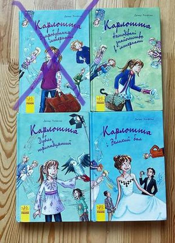 Серія з 4 книг Дагмар Хосфельд про життя дівчинки Карлотти. Книги в хорошому стані, але в силу обставин на них з‘явилися маленькі жовті пятна по верху сторінок. На фото 3 їх видно. Всередині книг їх нема, кутики цілі. І в 2 книзі є типографічний брак, не рівно приклеєні сторінки в кінці. Видавництво Ранок 2017-2018рр. Усі книги по 60₴ Якщо берете усі, зроблю знижку.