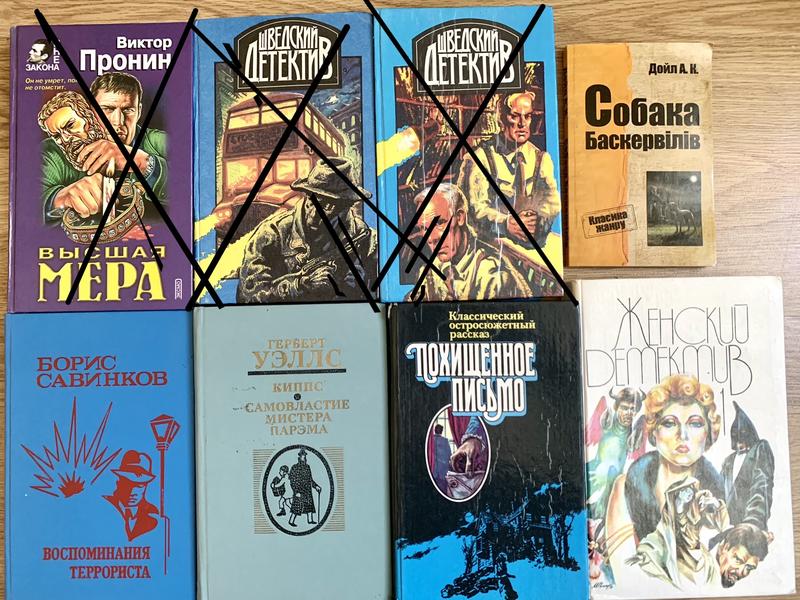 Б. Савинков- Воспоминания террориста, 384с. Г. Уэллс- Киппс, Самовластие мистера Парэма, 640с. Классические остросюжетные романы- Похищенное письмо, 688с. Женский детектив, 456с: М. Миллар- Крик за стеной. Н.Марш- Занавес опускается. Д.Сейерс- Новейший вариант пещеры Али-Бабы. Дафна дю Морье- Без мотива. А.К.Дойл- Собака Баскервілів- українською мовою, 216 с. Ціна за книгу.