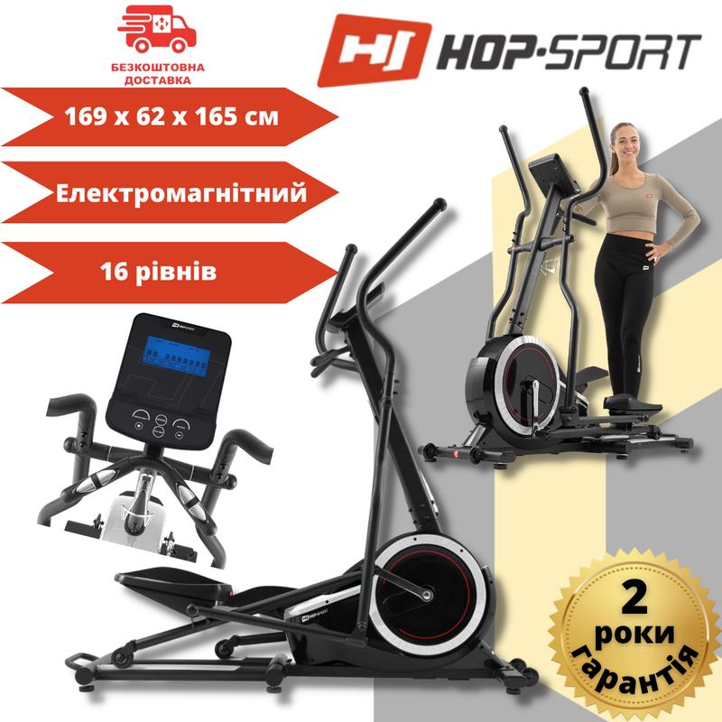Еліптичний тренажер Hop-Sport HS-070C Buzz - єдина передньоприводна модель з електромагнітною системою навантаження в лінійці бренду, яка практично немає аналогів на ринку. Орбітрек виготовлено за високими європейськими стандартами якості з використанням сучасних компонентів, тому він задовольнить потреби найвимогливіших користувачів. Машина стабільна, і завдяки масивній 51-кілограмовій конструкції вона дозволяє проводити тренування на найвищому рівні вдома. Ергономічний дизайн і широкі нековзкі педалі гарантують, що заняття на орбітреку будуть комфортними, безпечними та не створюватимуть навантаження на коліна. Масивна система махового колеса вагою 18 кілограмів працює дуже потужно, плавно, без ривків при зміні навантаження і, що не менш важливо, абсолютно тихо. 16 рівнів електромагнітного опору дозволяють поступово збільшувати інтенсивність тренувань, а це є запорукою швидкого досягнення довготривалих результатів. Для моніторингу стану та додаткової мотивації орбітрек обладнано функціональним комп'ютером та дисплеєм, на якому відображаються найважливіші показники тренування: час, відстань, швидкість, калорії, пульс. Ви можете контролювати швидкість серцебиття за допомогою чутливих сенсорних датчиків, які розташовані на ручках стійок. Після закінчення вправ Вам не потрібно буде турбуватися про те, що кімната залишиться схожою на спортзал. Еліптичний тренажер обладнано транспортними коліщатками, за допомогою яких Ви з легкістю зможете перемістити обладнання. Тож досить зволікати, змінюйте своє життя разом з Hop-Sport! Основні характеристики: - система навантаження: електромагнітна - вага системи маховика: 18 кг - габарити: 169 х 62 х 165см (ВхШхД) - розміри коробки: 121 x 76 x 45см - вага тренажера: 51 кг - максимальна вага користувача: 150 кг - розмір педалей: 39х14см - довжина кроку: 40см - відстань між полозами: внутрішня 15,5см, зовнішня 46см, центральна 32см - 16 рівнів навантаження - давачі пульсу - транспортні ролики - гарантія: 24 місяці Показання комп'ютера: час тренування, пройдена дистанція, калорії, швидкість, пульс. Багатофункціональний тренувальний комп'ютер Перетворіть свої тренування в справжній виклик! Тренувальний комп'ютер з РК- дисплеєм на еліптичному тренажері Buzz робить це можливим. Ви можете вибрати одну з 13 програм тренувань: 6 попередньо встановлених, програма призначена для користувача, ручна програма, BODY FAT (визначає рівень жиру в організмі), 3 програми HRC (контроль частоти серцевих скорочень, можливість встановити верхню межу пульсу) і TARGET HR (частота пульсу залежить від віку спортсмена). Лічильник дозволяє контролювати найважливіші параметри тренування: час, швидкість, відстань, калорії, частоту серцевих скорочень. Він також показує обраний вами рівень навантаження, програму тренувань і максимальний рівень пульсу. Тактильні датчики пульсу Перевірте свій пульс за допомогою чутливих тактильних давачів в рукоятках! Результат вимірювання пульсу відображається на дисплеї. Під час тренувань все, що вам потрібно зробити, це покласти руки на давачі, щоб виміряти свій пульс. Правильний пульс є ключовим елементом тренувань. Будь то спалювання калорій, поліпшення фізичної форми або зміцнення сил - оптимальна частота серцевих скорочень завжди допоможе вам досягти бажаних результатів більш ефективно! Транспортні ролики Після тренуванн