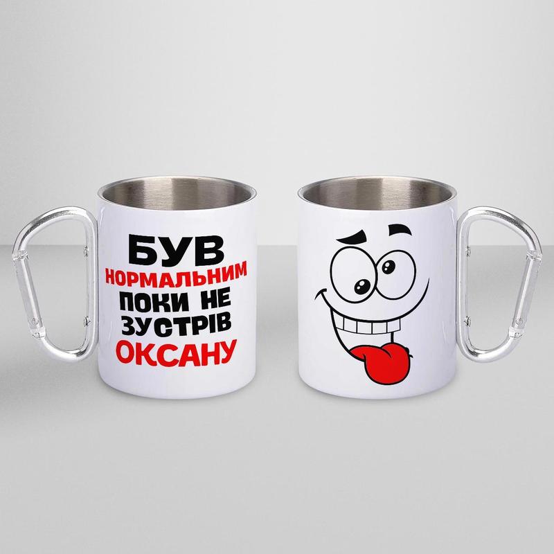 Кружка металева з карабіном "був нормальним поки не зустрів оксану" 300 мл біла|швидка дос...