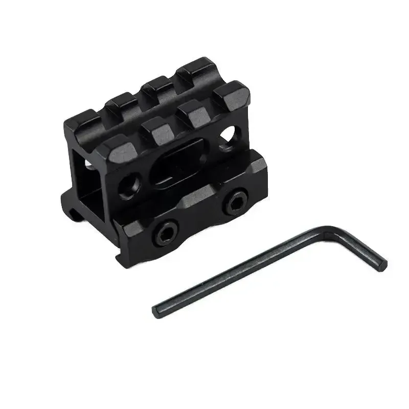 Кронштейн прямокутний із 3 слотами призначений для встановлення на нього коліматора, встановлюється на планку Пікатінні. Ціна: 520 грн. 1 шт. Новий. Кронштейн має кріплення на двох болтах, кріпиться на планку Пікатінні та дозволяє закріпити на ньому коліматор та інші аксесуари, які можуть вам знадобитися. Спеціальна конструкція кронштейна забезпечує універсальність, крізь отвір, який у ньому знаходиться, видно рідний приціл зброї, тому можна безперешкодно користуватися одночасно коліматором і рідним прицілом. Швидко встановлюється та знімається на планку Пікатінні. Легкий. Виготовлений з авіаційного алюмінію 6061 з анодованим покриттям для запобігання корозії. Характеристики: Матеріал: Авіаційний алюміній 6061 Довжина: 40 мм Ширина: 30 мм. Висота: 30 мм Вага: 33 грм Комплект: 1 шт. Кронштейн для коліматора. 1 шт. Шестигранний ключ.
