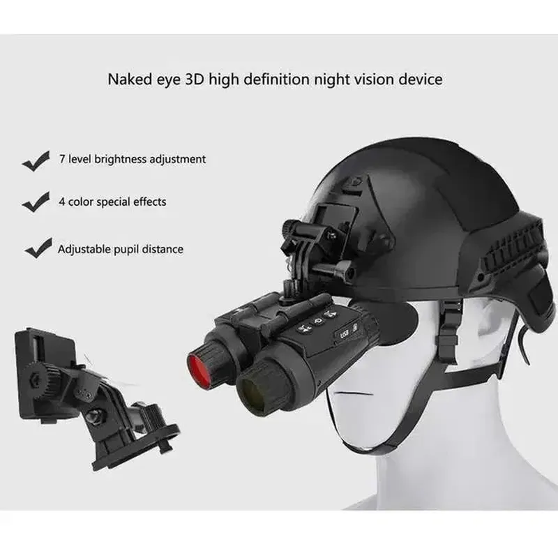прилад нічного бачення NV8300 Super Light HD 36MP 3D до 500 м Особливість: 1. Технологія 3D-дисплея неозброєним оком в окулярах із двома екранами відновлює реальну тривимірну сцену, видиму людським оком (патент на 3D-пристрої нічного бачення неозброєним оком затверджений у різних країнах) 2. Вбудований 1,4-дюймовий подвійний екран 390*390, 7-рівневе регулювання яскравості дисплея. 3. Повністю незалежна технологія, може незалежно регулювати компенсацію зору лівого та правого ока (діапазон регулювання рефракції +/- 3,5, короткозорість, компенсація регулювання далекозорності 350), 7-кратне збільшення 4. Виріб має невеликий розмір, легку вагу та може використовуватися різними портативними способами. Має ремінь для підвішування на шию, ремінь для переносного головного убору та тактичний шолом для головного убору. 5. Відстань спостереження в повному чорному кольорі до 500 м, відстань спостереження за слабкого освітлення 1 м ~ нескінченність 6. вбудована літієва батарея ємністю 2600 мА·год. 7. Потужне інфрачервоне світло, 7-швидкісне регулювання яскравості інфрачервоного світла. 8. 4 колірні ефекти: кольорове, чорно-біле, місячне світло, плівковий негатив (негатив) 9. Регульована відстань між зіницями від 60 до 72 мм. 10. IP54 водонепроникний Основні сценарії застосування: тактика, розвідка, охорону та спостереження, відпочинок у кемпінгу, дослідження печер, нічна риболовля та катання на човнах, спостереження та фотографування дикої природи тощо. Специфікація: Роздільна здатність фото: 36М, 12М, 8М, 5М, 3М, 2М, 1М Роздільна здатність відео: 4K, FHD, HD ДАТЧИК: датчик зоряного світла 2,0 МП Екран дисплея: внутрішній екран 1,4 дюйма, 390*390 HD TFT, 7-рівневе регулювання яскравості, вільне перемикання між одинарним і подвійним екранами, 7-кратне збільшення. Окуляр: повністю незалежна технологія, може незалежно регулювати компенсацію зору лівого та правого ока (діапазон регулювання рефракції +/- 3,5, компенсація регулювання короткозорості та далекозорності 350). ІЧ-світлодіод: 3 Вт, потужний інфрачервоний прожектор 850 нм, 7 рівнів інфрачервоного регулювання Об'єктив: велика діафрагма F1.0, f = 25 мм, кут огляду 10. Автоматичне вимкнення: 1 хв/3 хв/5 хв/10 хв/ВИМК. Відстань перегляду в повній темряві: приблизно 200-250 метрів, 3 метри ~ нескінченність Цифровий зум: цифровий зум 8X Джерело живлення: літієва батарея 3,7 В, 2600 мА·год. «Рабоча температура/Температура зберігання»: Робоча температура від 20 до +50 температура зберігання від 30 до +60. Розміри та вага: прибл. 154 мм*134*60 мм/363 г Комплектація Прилад нічного бачення Пов'язка на голову Кріплення FMA L4G24 на шолом Плечовий ремінь Інструкції Кабель для передавання даних Кронштейн перекидного ковша