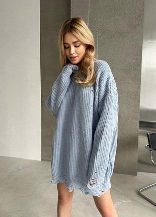 Жіночий сірий светр рваний оверсайз з розривами теплий з вовною у складі