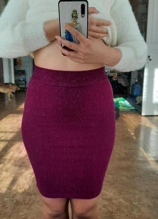 Спідниця олівець резинка тягнеться юбка карандаш тепла осінь зима фуксія стрейч коліно гумка облягає по фігурі