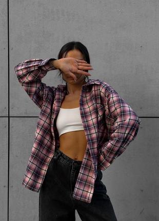Жіноча сорочка фланелева клітчата в клітинку клітку з натуральної та якісної тканини оверсайз вільного крою бавовняна