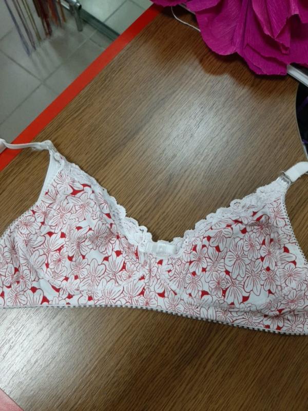 Бавовняний бюст, без кісточок, є отстегивающая кліпса для годування, застібка на 2 гачка. Розмір: 85В Колір: білий/червоний Склад: 95% бавовна 5% еластан Країна: Україна