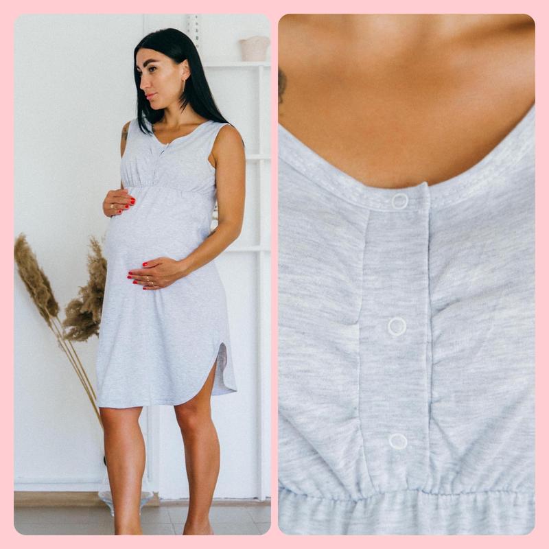 Трикотажна нічна сорочка для вагітних у пологовий будинок. Жіноча трикотажна нічна сорочка на пологовий будинок для майбутніх мам, нічна пошита по спеціальніх лекалах для вагітних, на середньої довжини (100 см) з прибиранням на базі якій резинці під грудьми для зручності живота, що зростанні., має планку на кнопках (секрет для годування). Полотно виробу турецький кулір 100% бавовна, м'яке та приємне до тіла. Розмірний ряд: 44-46 48-50 52-54 на фото дівчина в 44-му розмірі зріст 165 див. Стиль Повсякденний Колір : сірий 🐨 Особливості моделі Для годування Виробництво: Україна 🇺🇦 💟 Допоможемо підібрати розмір 💟 Доставка Укр Пошта і Нова Пошта 💟 Повна передплата на картку Для замовлення пишіть в Дірект