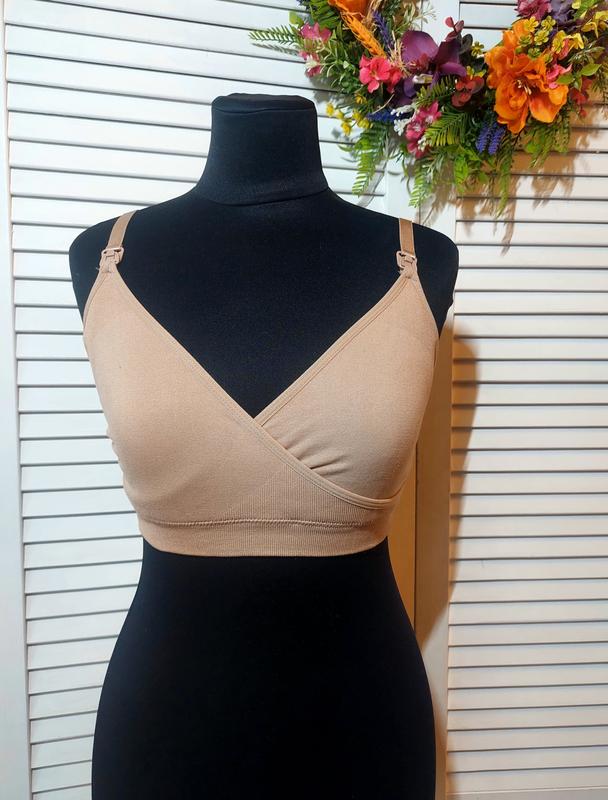 Бюстгальтер топ бежевый для беременных и кормящих мам для кормления В идеальном состоянии ❤️ Очень удобно грудь класно фиксирует. Под одеждой незаметно безшовная форма. Подойдет на ог 70-75 на размер груди полномерная В-С На все вопросы дам ответ ❤️