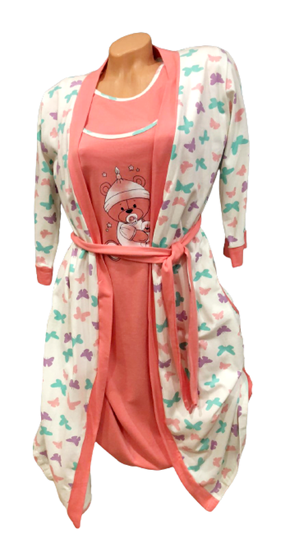 Комплект двойка для беременных - халат, ночная рубашка для кормления. Производство - Турция. Цвет/Размер - Персиковый - M, XL. Состав - 95% хлопок, 5% эластан.
